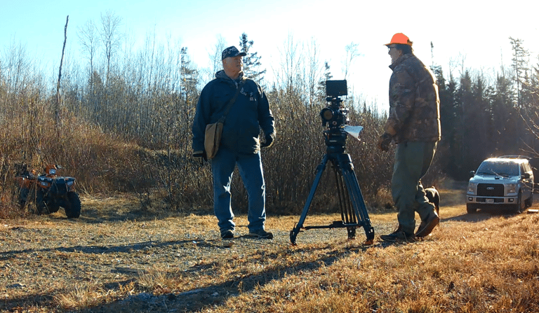 Ken and Jim filming part of the video on location at Camp Oot-Oot in northern Maine. (below)