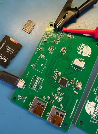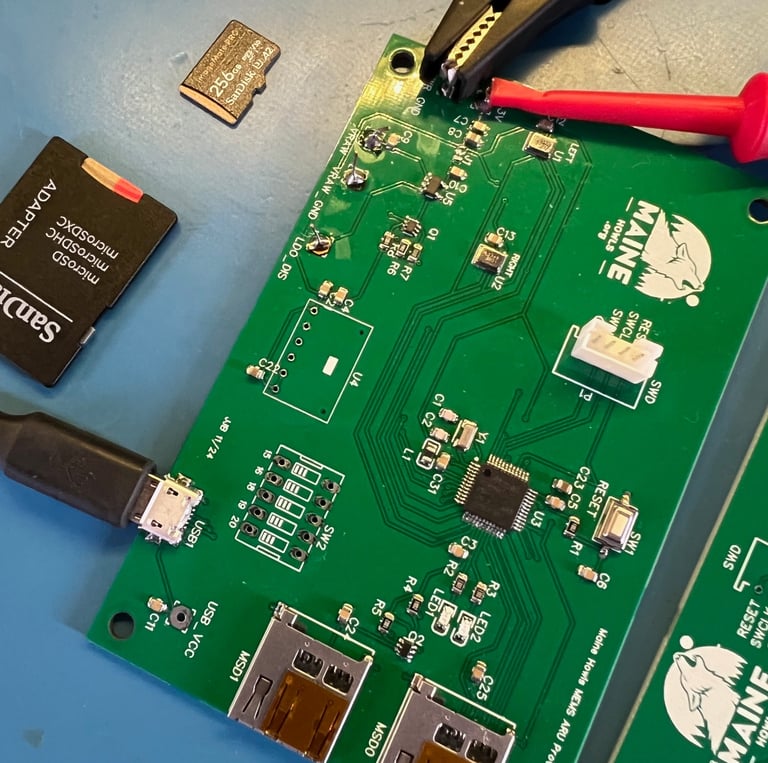 A successful design and build begins with an idea and a prototype. Here is a custom build that Jim is working on with increased memory capacity and other features that will eventually provide a cost effective means for us to efficiently record high quality audio in the wild (left).