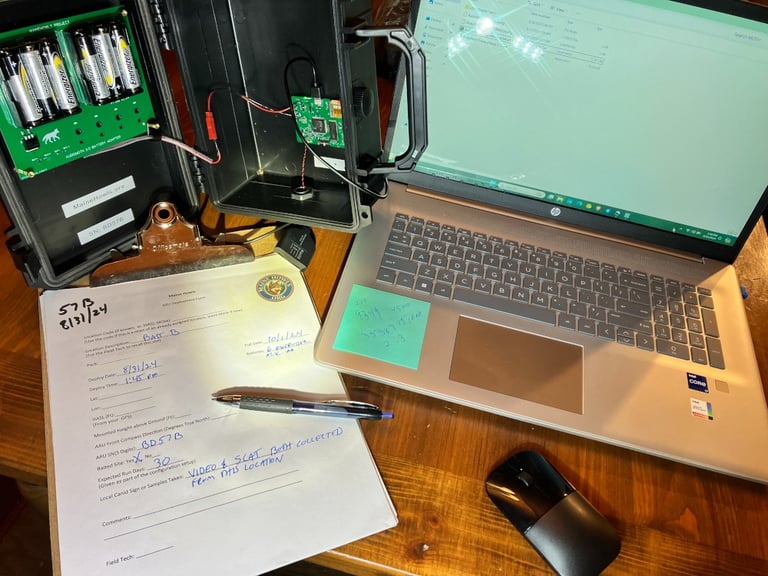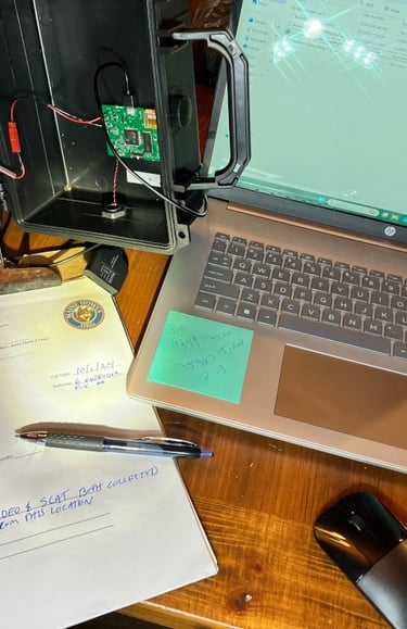 We have collected hundreds of Canis vocalizations to date, and we're just getting started. Below to the left are a few videos highlighting the spectrogram of the sounds we have recorded (click to play). Bio-acoustic research is a relatively new science and researchers specializing in this field, some of who we are working closely with, can learn a lot about the animals by analyzing these charts and other data collected. Some of our custom ARU builds and configuration/programming efforts are illustrated as well.