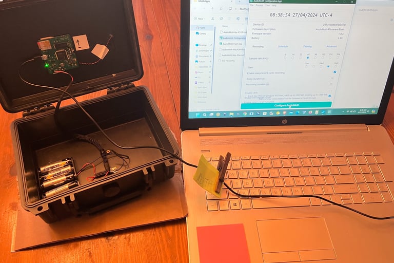 Programming an ARU's recording schedule prior to deployment (above).